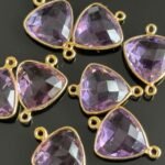 10mm Triangle Purple Amethyst Connector – 18K Gold Plated Sterling Silver, Natural Gemstone Link with Single Double Loops