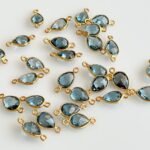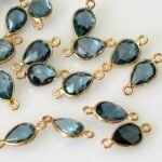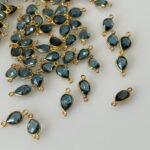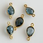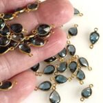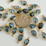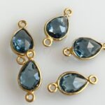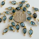 18K Yellow Gold Plated Sterling Silver Genuine London Blue Topaz Faceted Pear Connector, December Birthstone Jewelry, Healing Gemstones