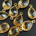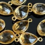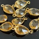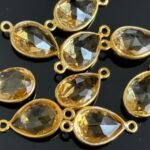 This 6x9mm natural citrine connector features a sparkling rose cut gemstone, bezel-set in 18K gold plated over sterling silver. With […]