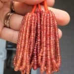 Key Features: Stone: Genuine orange-red sapphire Size: 2.5mm to 3mm faceted rondelle beads Length: 4-inch strand Color: Beautiful orange-red hue […]