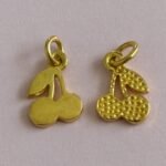 Gold Vermeil Cherry Charm – 12x8mm Fruit Pendant – 18k Gold Over Sterling Silver – Tiny Cherry Necklace Charm – Sold by Piece – Vermeil Gold