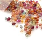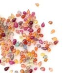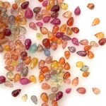 Natural Mixed Color Sapphire Drop Beads 2×4–3x5mm, High Quality Orange Red Blue Mixed Sapphire Gemstone Drops Beads, Pack of 10 Loose Bead