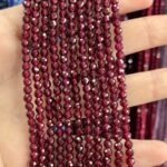 Natural Red Garnet Faceted Round Beads 3mm – 15″ Strand – Genuine Gemstone Beads for Jewelry Making – Faceted Gemstone Beads – Garnet Beads