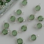 Sterling silver White Clear Round Bezel-Set Swarovski Crystal 6mm-Birthstone Connector-Crystal Connector-Pack of 10-Made in USA